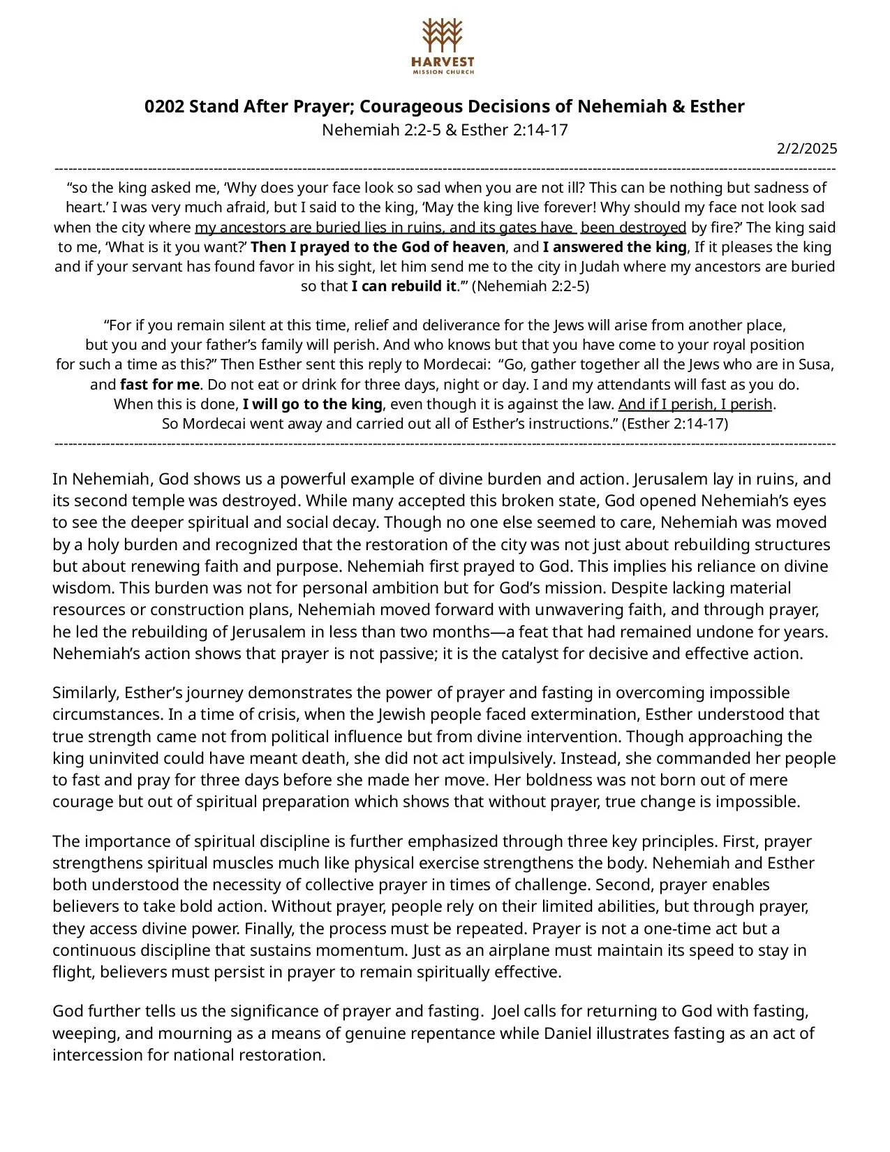 HMC Church February 2, 2025 Stand After Prayer; Courageous Decisions of Nehemiah & Esther HMC Church February 2, 2025
