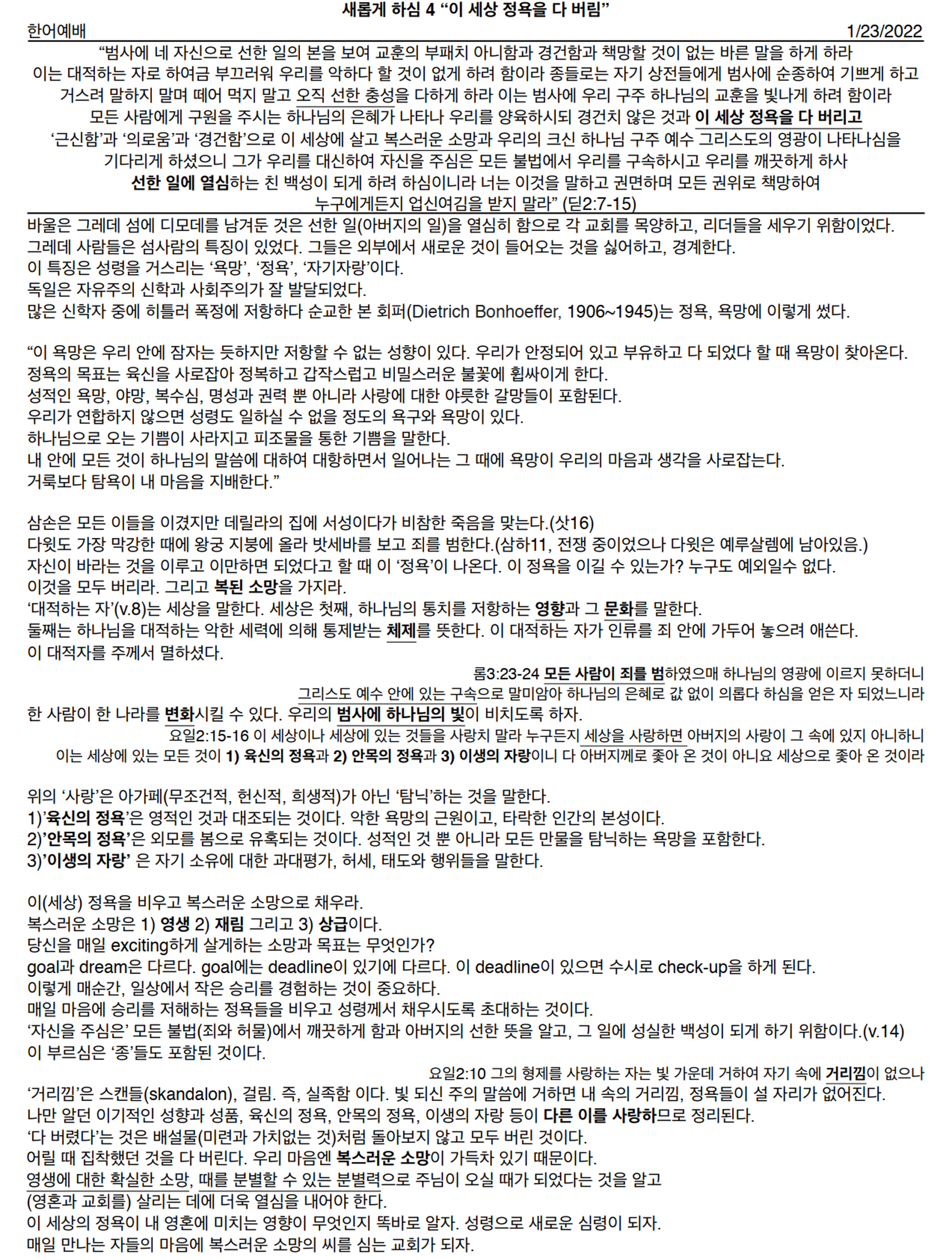 새롭게 하심 4 "이 세상 정욕을 다 버림"