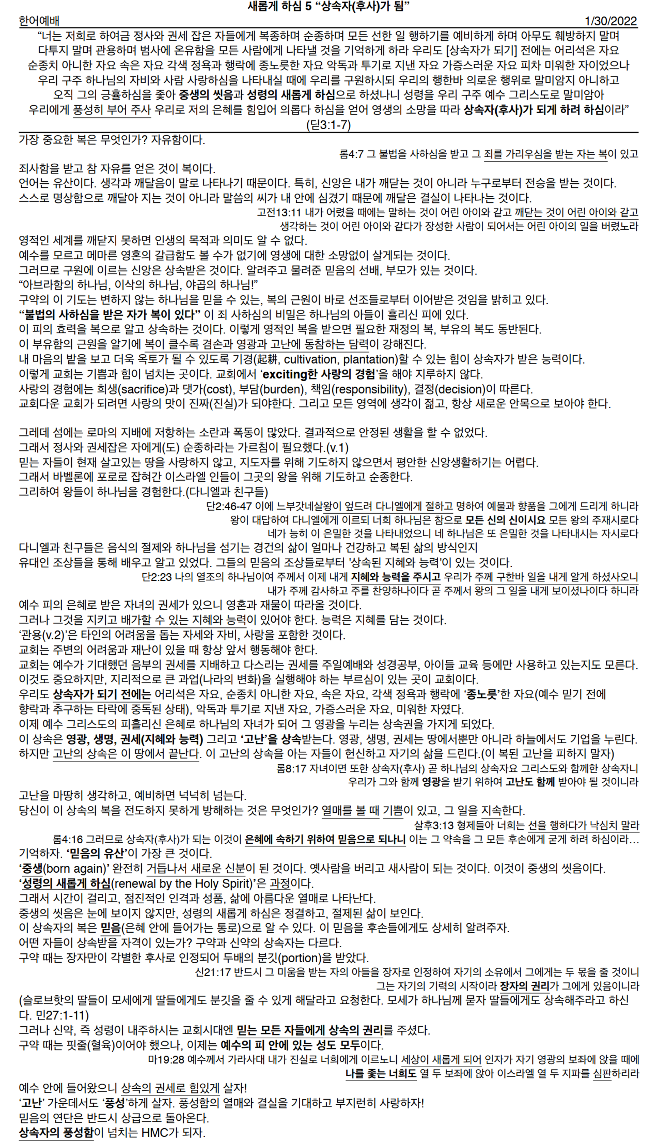 새롭게 하심 5 "상속자(후사)가 됨"