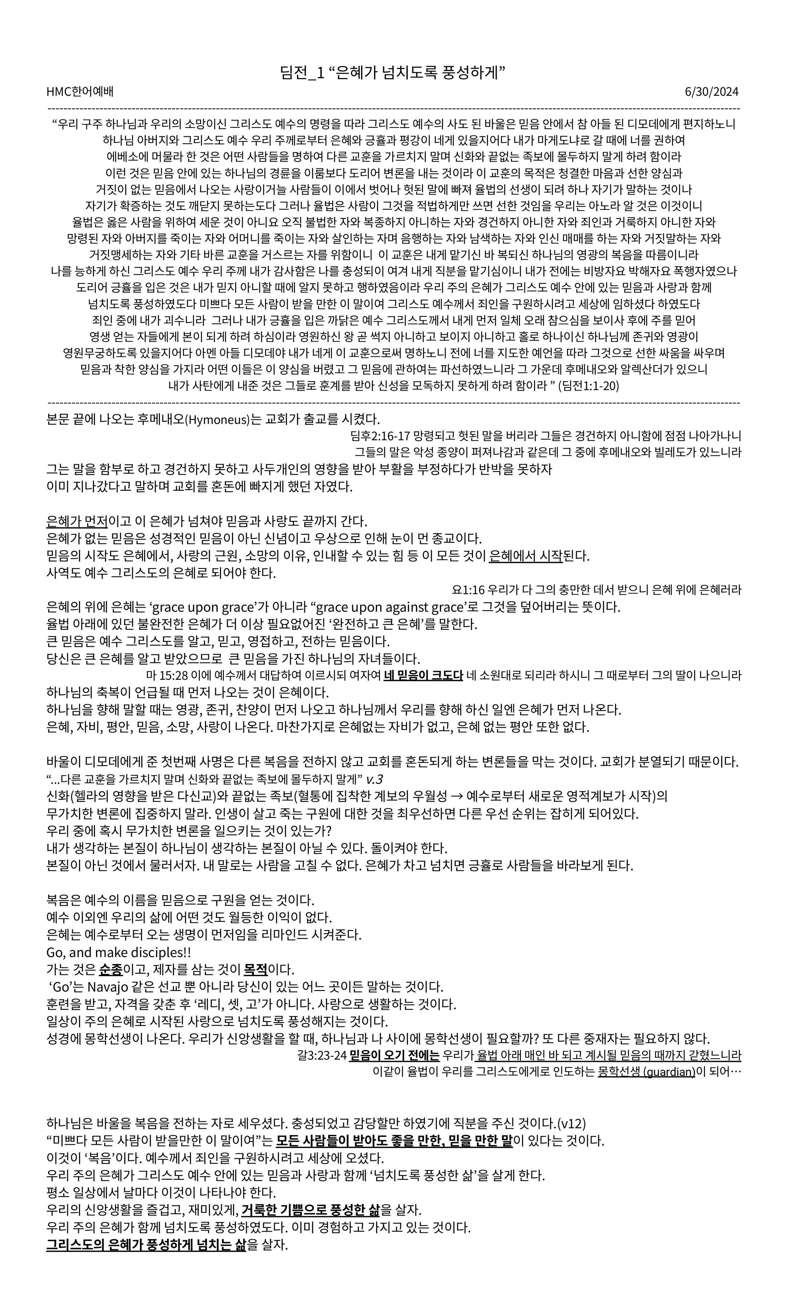 딤전 1 "은혜가 넘치도록 풍성하게"